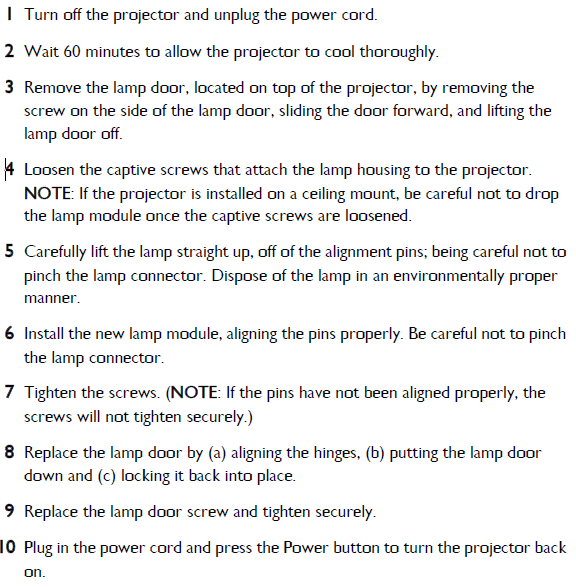 ·replacing SP-LAMP-070/ SP-LAMP-029 projector lamp step