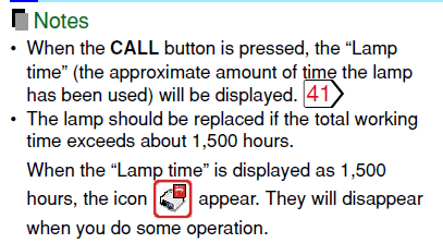 lamp warranty time counter.) If the time indicated here nears 1500 hours, contact your store of